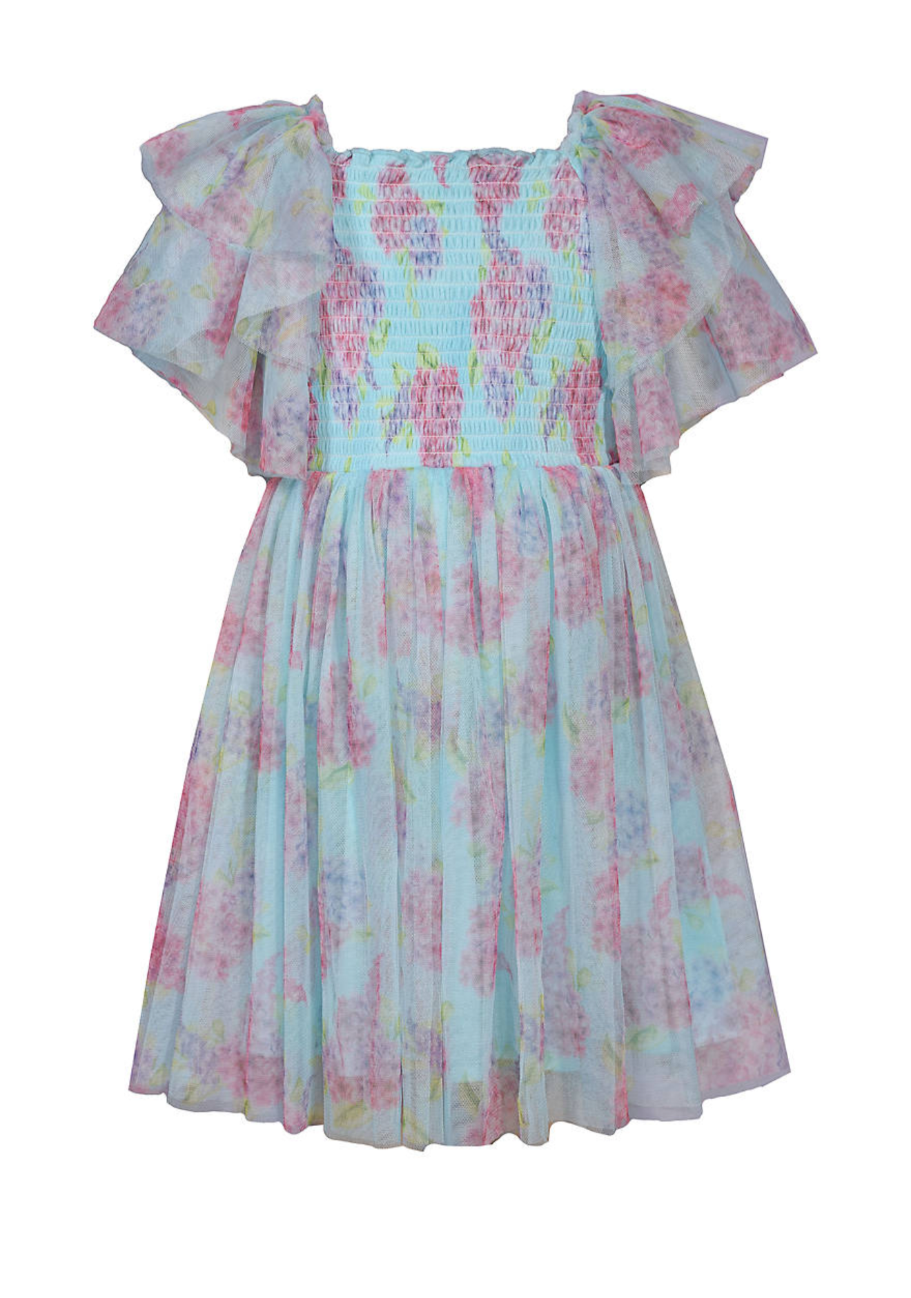Bonnie Jean Blue Smocked Mesh Dress